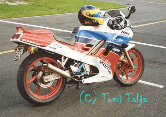 Toukokuussa 2009 vihdoin rohkaistuin ostamaan pitkään haaveena olleen moottoripyörän. Kyseinen vehje ei ehkä ole se kaikista tavanomaisin vaihtoehto, mutta jostain kumman syystä vuosien saatossa minulle on syntynyt intohimo saada tuommoinen itselleni. Ehkä se alkoi jo kevariaikana, jolloin ajokkina oli HRC-värityksellä ollut 1991 Honda NSR 125RL, joka muistutti kovin paljon Superbikessä 1990-luvun vaihteessa käytettyä VFR750R rc30:stö.