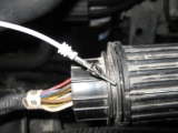 4) Vastapuolelta pitäisi löytyä tyhjä kolo, johon em. johto tulee. Tökkää reiästä tulppa pois ja asenna johtosarja tähän. Tämän jälkeen voit kiertää liittimen takaisin kiinni ja asentaa sen takaisin pidikkeeseensä. Vedä lisäksi johtosarjan johdot auton kiinnikkeitä hyväksikäyttäen sumuvalojen paikkojen taakse. Kiinnitä myös maajohto joko auton runkoon, tai akun miinusnavan kenkään. |